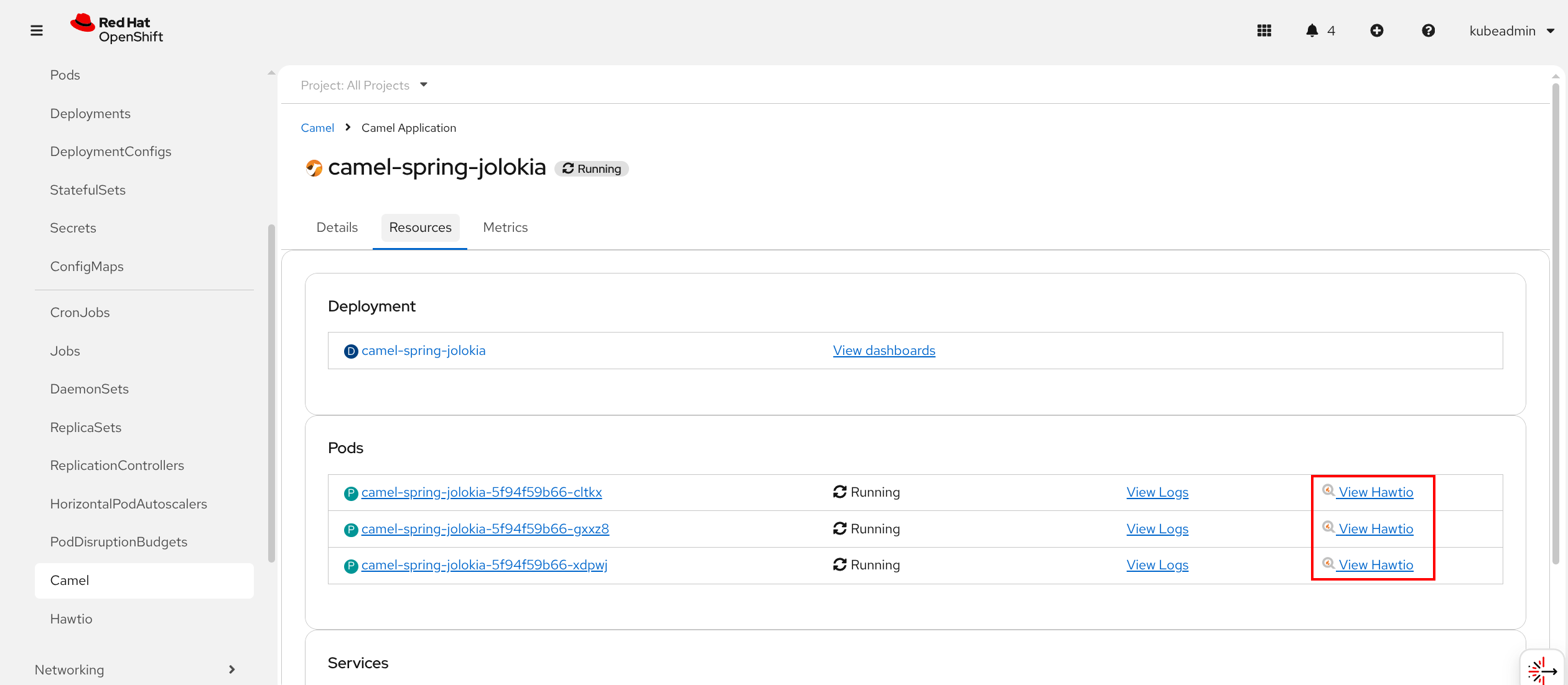 By default the HawtIO Console Plugin for Openshift offers the features from the HawtIO Online console into the Openshift.